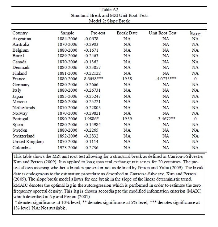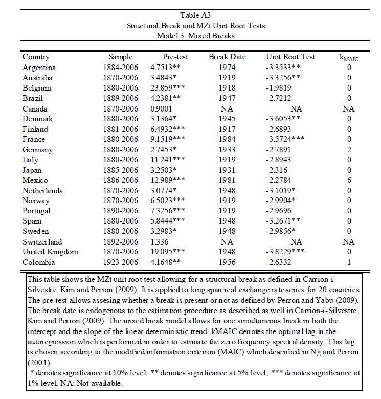 This paper provides evidence of long run purchasing power parity by performing a recently developed method to test for unit roots in the presence of structural breaks. Data consist of real exchange rate series for 20 countries including developed and deve