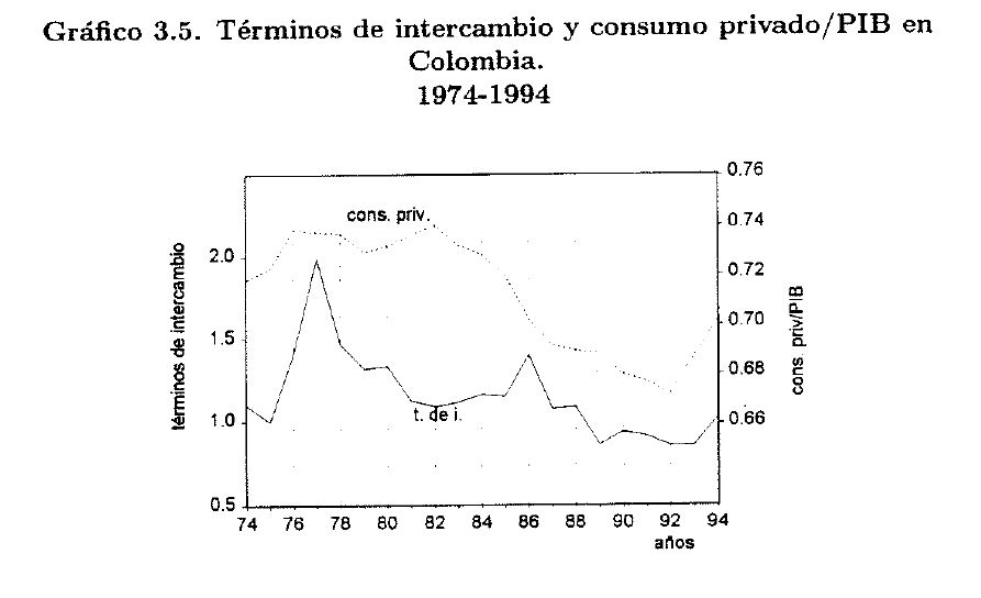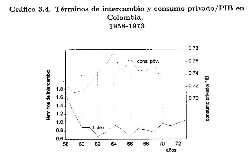 No obstante, hay algo que puede afirmarse acerca de un deterioro permanente de los términos de intercambio y que usualmente no se dice (o sólo se menciona con insuficiente claridad): tal deterioro tiende a elevar las tasas de ahorro. En las secciones siguientes se mostrará esto utilizando dos versiones de un modelo de la economía dependiente. Al final se presentará alguna evidencia empírica favorable a esta hipótesis.