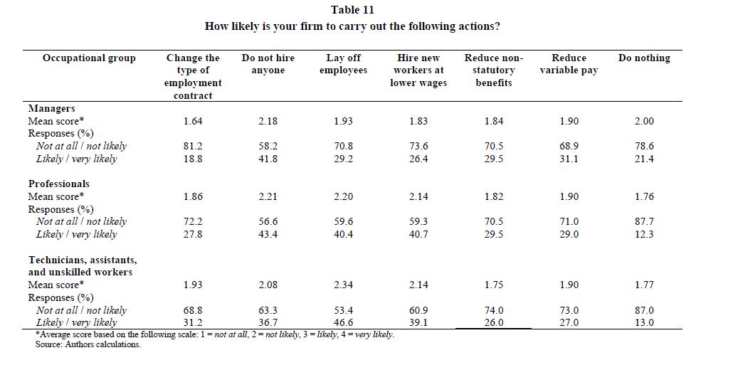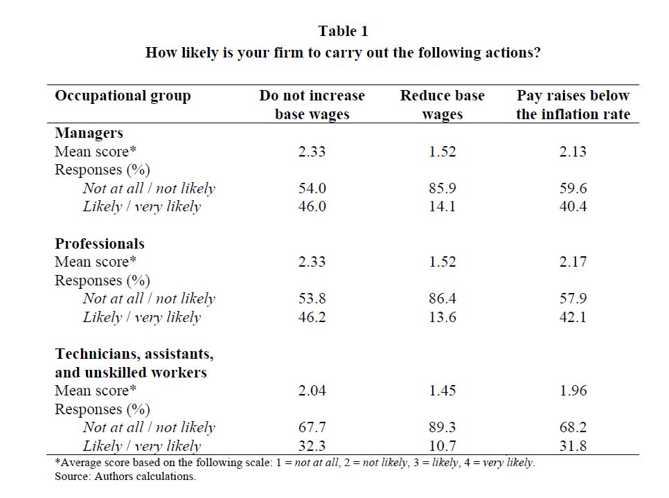 Downward wage rigidities and other firms? responses to an economic slowdown: evidence from a survey of colombian firms