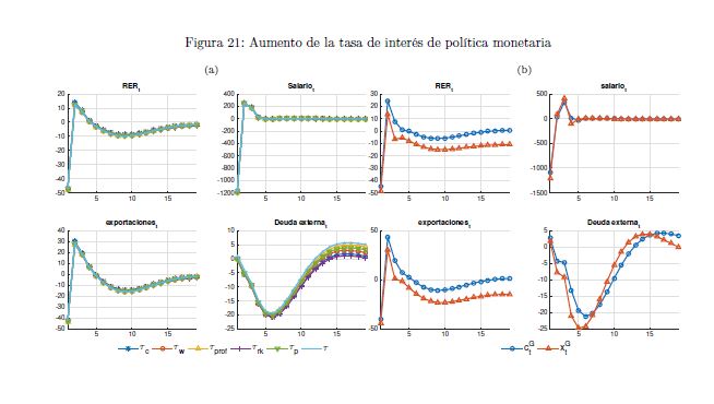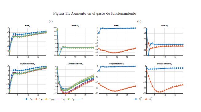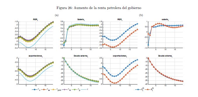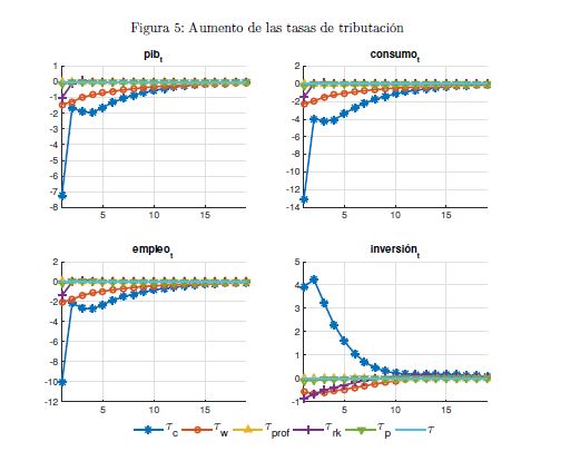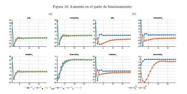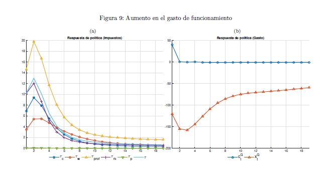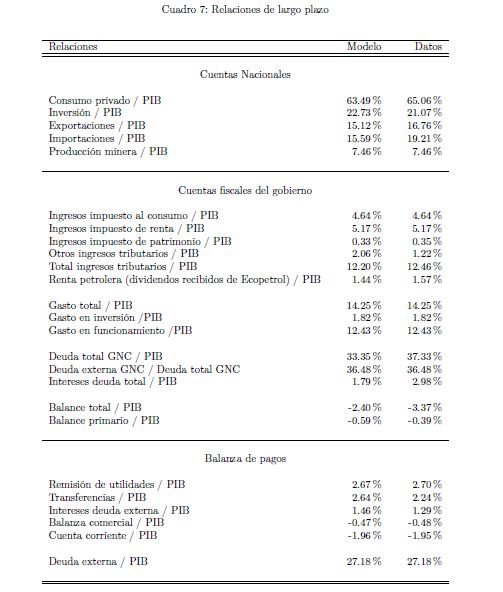 El gobierno es un agente que influye sobre la actividad económica a lo largo del ciclo y afecta las variables reales y nominales de un país por medio de sus políticas de ingreso y de gasto. También es un determinante importante de la estabilidad macroeconómica, en cuanto que esta depende, entre otros, de la sostenibilidad de sus finanzas y de la contraciclicidad de sus políticas. El objetivo de este documento es construir un modelo fiscalmicrofundamentado de equilibrio general dinámico y estocástico DSGE-neokeynesiano para Colombia (FISCO), en donde el gobierno juega un papel preponderante en la economía. El modelo se construye, calibra, estima y evalúa teniendo en cuenta sus particularidades económicas e institucionales. El propósito es que sirva como herramienta de análisis de la política fiscal y su nexo con la economía y la política monetaria. Con el propósito de evaluar las predicciones del modelo FISCO se presentan algunas simulaciones y se estudian las dinámicas de las principales variables macroeconómicas ante choques positivos y transitorios a las tasas de tributación, al gasto de funcionamiento, al gasto de inversión, a la tasa de interés de política monetaria y a la renta petrolera del gobierno. Las cinco conclusiones principales de política económica que emergen del modelo y de sus simulaciones son las siguientes. Primera, la inflación es un asunto que compete a la política monetaria, como se sabe, pero también a la política fiscal. Segunda, los choques positivos a la política fiscal son contrarrestados en cierto grado por la política monetaria; por el contrario, choques a esta última son refrendados por la política fiscal. Tercera, el choque al gasto de funcionamiento del gobierno desplaza a la inversión privada. Lo contario sucede con el choque a la inversión. En este mismo sentido, el recorte al gasto de inversión impacta en 05r medida a la economía que el ajuste al de funcionamiento. Cuarta, el balance estructural del gobierno depende del tipo de choque de política que enfrenta la economía. Quinta, la regla fiscal cumple un rol estabilizador de las finanzas del gobierno y de la economía, como es su objetivo; sin embargo, puede convertirse a la vez en un agravante de la situación macroeconómica ante ciertos choques.