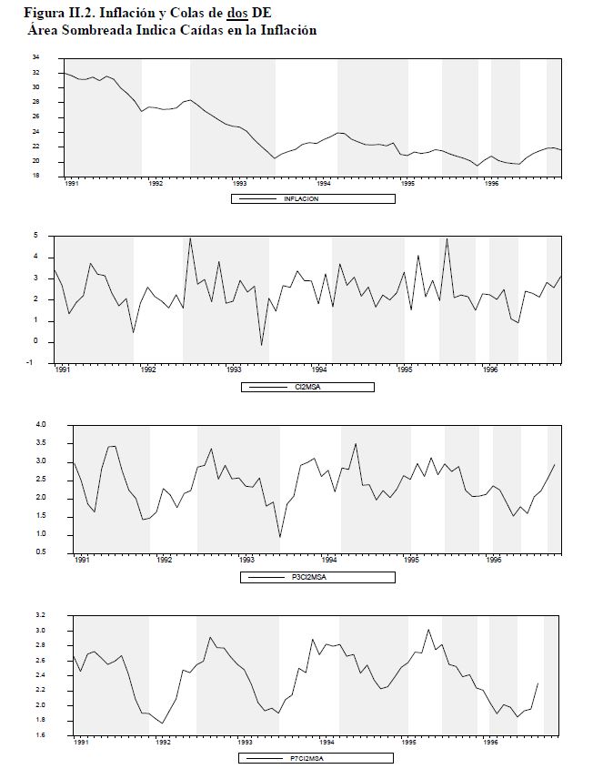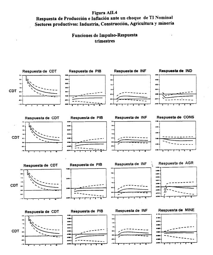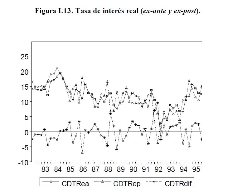 El documento reúne una serie de notas que estudian aspectos empíricos del comportamiento de la tasa de interés y la inflación en Colombia. La presentación se divide en dos grandes secciones. La primera analiza la relación entre la tasa de interés y la inflación, con el fin de evaluar el empleo de la primera como instrumento de la política monetaria . Esta indagación se aborda en tres pasos: primero, se estudia la relación entre las diferentes tasas de interés de mercado, esto es, la tasa interbancaria, la de captaciones del sistema financiero y la de créditos. Se utilizan tres herramientas empíricas, el estudio de estacionalidades, los vectores autorregresivos y el análisis espectral (a través del estadístico coherencia, del cual se presenta una breve e intuitiva explicación). Se observa que las tres tasas comparten un comportamiento estacional ascendente al final del año y se relacionan estrechamente en sus ciclos de entre 7 semanas y 2 meses, y entre 3 y 4 meses. Estos resultados, así como los obtenidos con la metodología de vectores autorregresivos, permiten llegar a la conclusión de que es posible afectar las tasas de colocación y captación a través de intervenciones en la tasa interbancaria. A partir de lo anterior, el segundo paso analiza la relación entre la tasa de interés (nominal y real), la inflación y la actividad económica. Se observa que un choque de una desviación estándar a la CDT no afecta a los sectores minero y de servicios (transporte, agua, electricidad), pero tiene un efecto negativo sobre el PIB y la producción industrial y agrícola. Debe destacarse que este último efecto tiene mayor magnitud y duración cuando el cambio se da en la tasa de interés nominal. También es interesante el resultado de que cambios en la tasa de interés tengan un efecto diferente sobre los sectores de servicios, pues un hecho similar se ha documentado para economías industrializadas; los estudios indican que la demanda de servicios es menos sensible a cambios en el ingreso que la de manufacturas. En cuanto al efecto sobre la inflación, su dirección depende crucialmente de si el choque se da sobre la tasa real o nominal: en el primer caso la inflación cae inmediatamente, mientras en el segundo parece responder con un leve ascenso, en especial 6 meses luego del choque. La tercera sección de la primera parte elabora un cálculo de la tasa real ex-ante, dado que ésta es la tasa de interés relevante para el tipo de análisis realizado. La primera conclusión que se desprende de este cálculo es que, salvo cuatro o cinco episodios puntuales, la diferencia entre las tasas reales ex-ante y ex-post no es marcada, y su evolución apoya la validez de los VAR estimados con la tasa ex-post para medir el impacto de la política monetaria. El ejercicio es útil, además, para analizar ciertos aspectos de la relación entre la tasa nominal y la tasa real ex-ante, y de esta última con la inflación esperada. En particular, parece existir una correlación negativa entre la tasa ex-ante (CDTreal) y la inflación esperada (INFE). Tal relación es importante por que indica en que la tasa de interés nominal de corto plazo no ha proveído una protección efectiva contra la inflación. Éste es un resultado documentado para los Estados Unidos y para países europeos, y la evidencia muestra que es bastante robusto. La segunda parte del documento analiza dos aspectos puntuales de la inflación en Colombia. En primera instancia se elabora un indicador líder de la inflación, que consiste en la cola inferior de la distribución de cambios en los componentes del IPC, a 1 y 2 desviaciones estándar. La idea es que cuando estas colas se llenan permiten prever que la inflación va a caer con un horizonte de entre 4 y 12 meses. Finalmente, se lleva a cabo la estimación de un tipo de costo de la inflación en Colombia desde 1972 hasta 1996, basado en la variabilidad de precios relativos. Un aporte importante de esta sección es el uso de un empalme de las tres series existentes de IPC, que permite tener datos unificados desde 1972 hasta el presente (la metodología empleada en este empalme se presenta en el apéndice). El método empleado consistió en correr una regresión de la variabilidad en precios relativos, medida como la desviación estándar de los incrementos anuales en 27 subgrupos del IPC, contra la tasa de inflación como variable independiente. Se realizaron estimaciones sucesivas, por ventanas de 36 meses, de tal forma que se obtuvo una serie del coeficiente de la inflación en esta regresión. Las conclusiones son: i.Según esta medición, el costo de inflación fue positivo durante los setenta y la primera mitad de los ochenta. Sin embargo, la inflación no parece haber sido costosa en el período 1987 - 1996. ii. El costo de la inflación no es constante a través del tiempo, sino que, podría conjeturarse, depende de la predictibilidad de esta variable para los agentes. Estos hechos parcialmente explican la percepción de una inflación no costosa que parece imperar en el país. De hecho, los agentes han podido predecir con fiabilidad la evolución futura de esta variable, ajustando sus precios acompasadamente, de tal manera que han dejado prácticamente inalterados a los relativos.