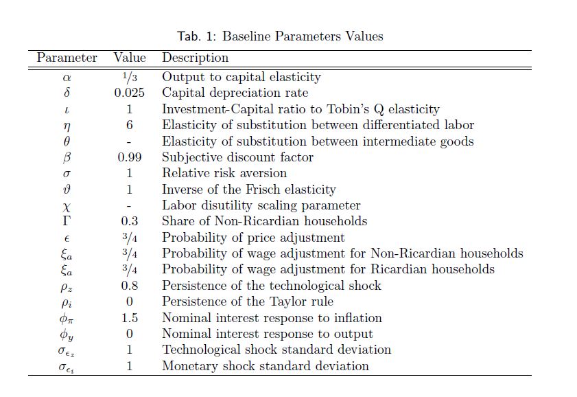 This document presents a dynamic stochastic general equilibrium model with rule of thumb (Non-Ricardian) agents and both nominal price and wage rigidities. The model follows closely that of Galí et al. (2004) and expands it to include a second way form of