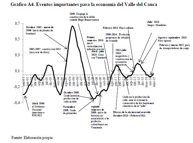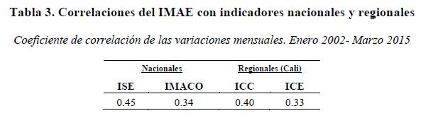 This paper takes as its starting point the work of Stock and Watson (1991) and this is applied in a regional context. From seven key time series of the department of Valle del Cauca in Colombia in the period January 2000 to March 2015, a monthly coinciden