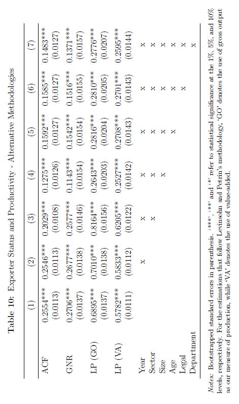 | dc.description.abstract | We study the relationship between total factor productivity (TFP) and exporting decisions for Colombian manufacturing rms during 2005{2013. We nd that productivity increases a rm's probability of being an exporter,and that exporters have higher produc | eng |