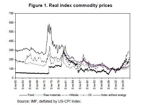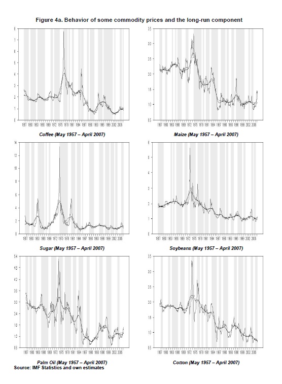 A threefold analysis of commodity prices is carried out to observe their long-run behaviour, their short-run properties and the main determinants. According to the evidence, the Prebisch-Singer hypothesis does not seem to be a property of most prices. The