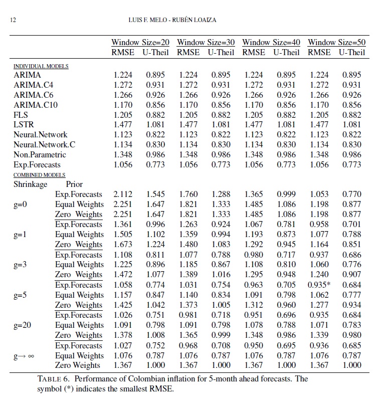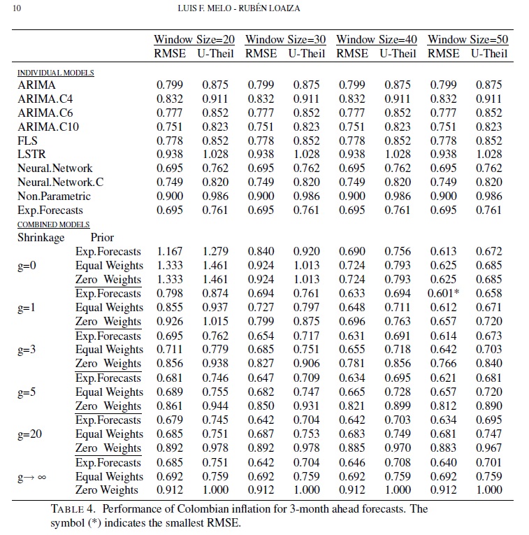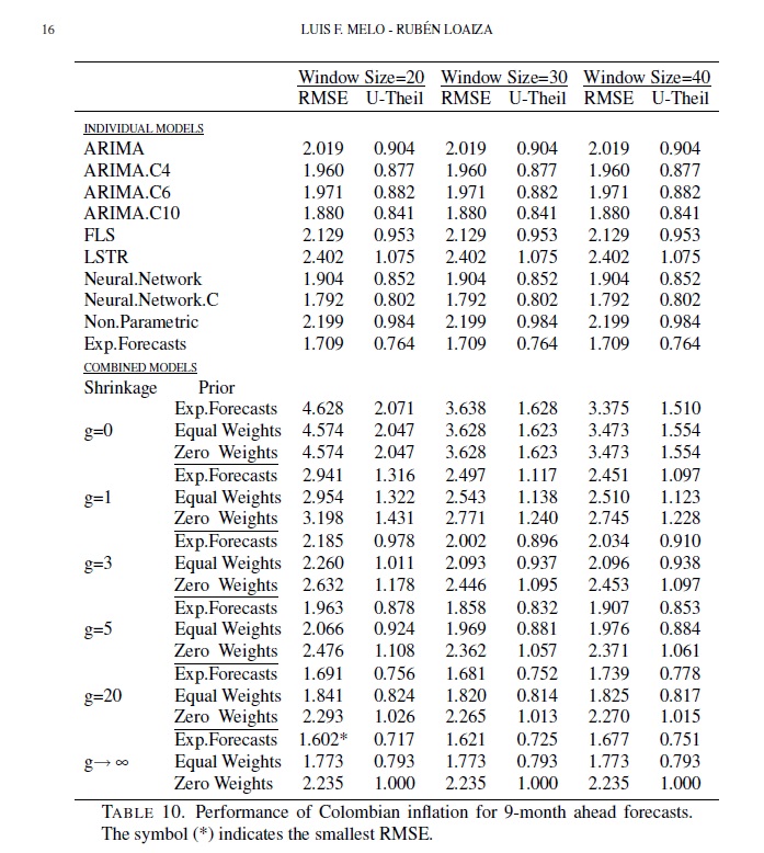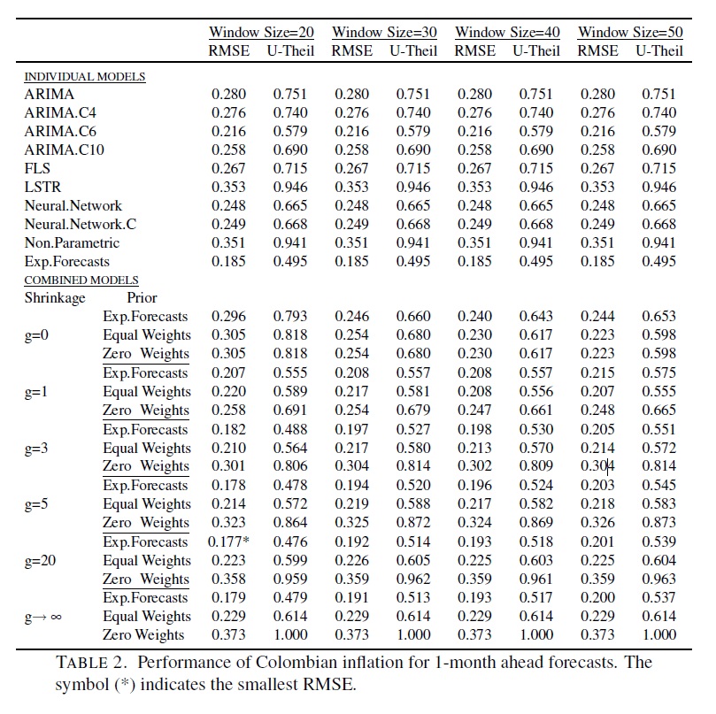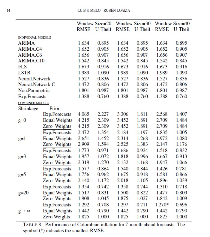 Typically, when forecasting inflation rates, there are a variety of individual models and a combination of several of these models. We implement a Bayesian shrinkage combination methodology to include information that is not captured by the individual mod