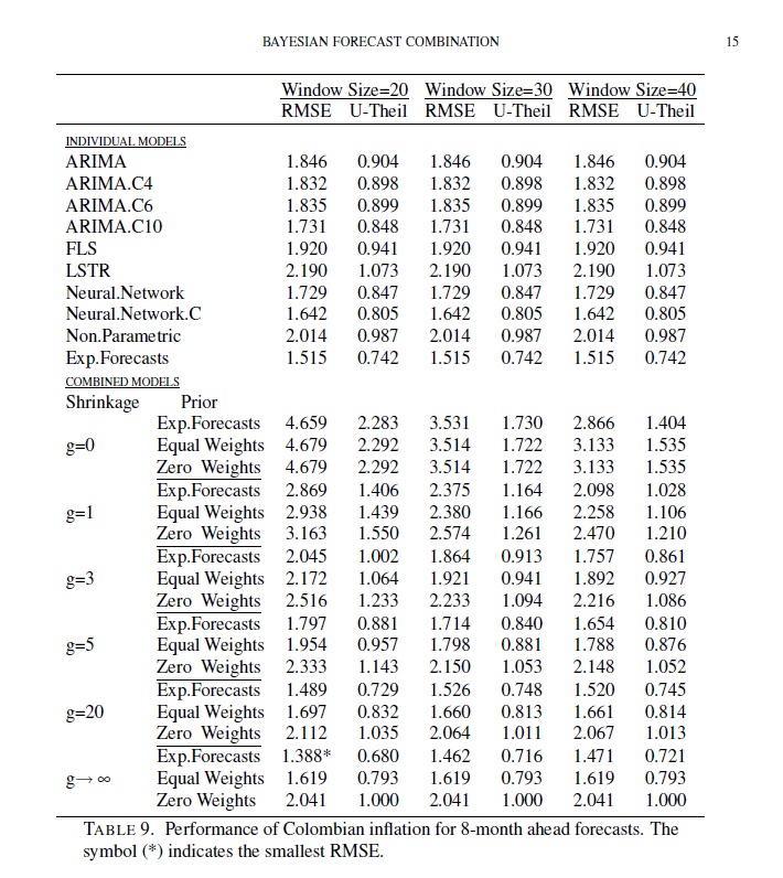 Bayesian forecast combination for inflation using rolling windows : an emerging country case