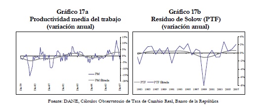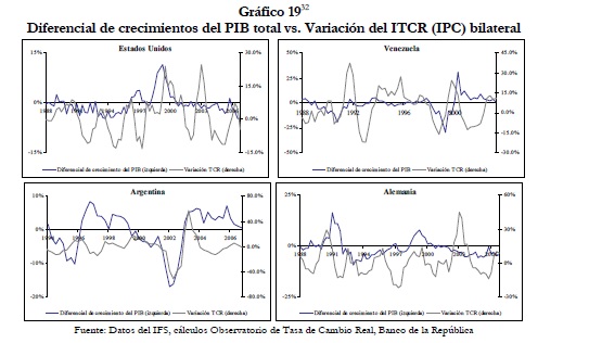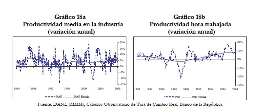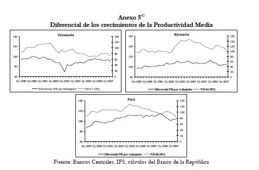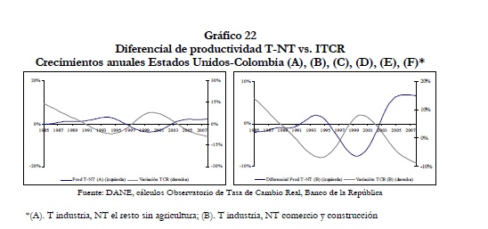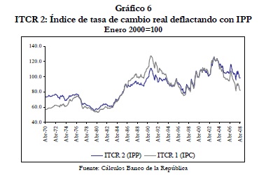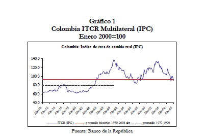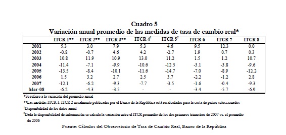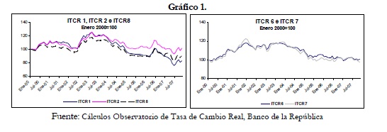 En un escenario como el actual, de continua apreciación nominal del peso colombiano frente al dólar, se hace relevante insistir en el uso de un concepto más amplio, como es la tasa de cambio real (TCR), para examinar las causas de la apreciación y evaluar la competitividad del país. Son muchos los enfoques a partir de los cuales se aborda el concepto de esta variable y por ello nació la idea del Observatorio de TCR. Su propósito esencial es centralizar y proveer las herramientas necesarias para su análisis respondiendo a las inquietudes de los agentes involucrados y constituyéndose en un elemento para la toma de decisiones de política económica. En este documento se proponen medidas alternativas de fácil seguimiento para evaluar periódicamente la evolución de la TCR y se analiza de forma preliminar qué tan desalineadas están sus distintas variantes respecto de su nivel de largo plazo. Las medidas alternativas muestran tendencias similares a las mediciones tradicionales, aunque difieren en la magnitud e interpretación del efecto. En cuanto a los determinantes del TCR a nivel global las ganancias en productividad relativa derivan en una moneda más fuerte. La información disponible sugiere que la industria colombiana ha incrementado su productividad, en especial si se compara con Estados Unidos y que el nivel actual del tipo de cambio real es cercano a aquel que es consistente con el grado de desarrollo de la economía.