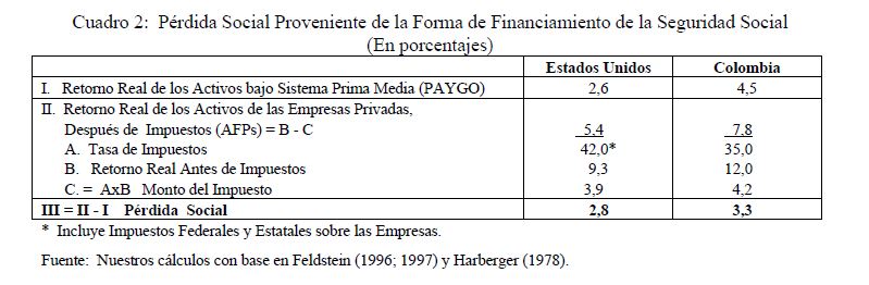 En este trabajo analizaremos el monto del llamado "impuesto puro" que se genera en las contribuciones destinadas a pensiones y salud en Colombia. Hemos calculado que este impuesto asciende en la actualidad a cerca del 17% para las empresas, por cada peso pagado a través de la nómina. Siendo que este monto es bastante elevado si se le compara con el cero o 3% observado en Chile, no parece conveniente elevar aun más las contribuciones a la seguridad social en cabeza de las empresas. Si dichas contribuciones en pensiones y salud se incrementan del actual 26,5% al 28,5% en los próximos tres años, como se propone en la reforma pensional, este impuesto alcanzaría cerca del 20% a partir del año 2005. ¿Qué empresa colombiana podrá competir en el ATPA, ALCA o CAN con sobre-costos parafiscales cercanos al 40% (incluyendo los diferentes a la seguridad social) e "impuestos puros” del 20%" ¿Cuál será la dinámica del desempleo y la informalidad laboral en los próximos años si recargamos los costos de la producción formal?