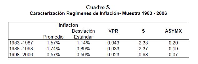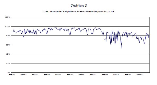 This paper examines the relation between the distribution of relative prices changes and the general inflation levels for the period 1983-2006 in Colombia. The evidence shows that there is a contemporary relation between the variance and the asymmetry of