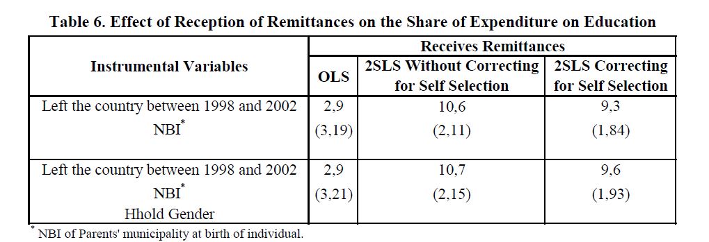 We assess whether international remittances affect Colombian household's expenditure composition and demand of education. We exploit the migratory wave that took place on late 90s due to one of the deepest crises in Colombian history, along with instituti