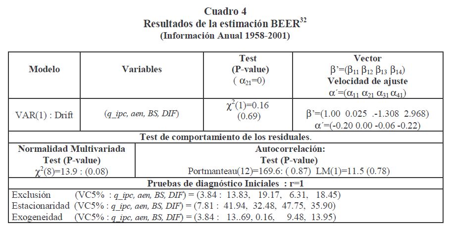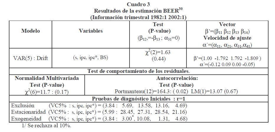 La estimación de los desequilibrios nominales y reales del tipo de cambio en Colombia es abordada en este documento a partir de la construcción de dos componentes: el permanente asociado con una tendencia estocástica y el transitorio vinculado con el ciclo. La separación entre lo permanente y lo transitorio se hace usando relaciones de largo plazo entre el tipo de cambio nominal (real) y sus determinantes fundamentales. La estimación de los desequilibrios nominales y reales (componente transitorio) se lleva a cabo para diferentes frecuencias (anual y trimestral) y periodos de información y se usan varios modelos de determinación del tipo de cambio nominal y real. El concepto de "common trends" (dual de cointegración) es introducido aquí para construir una variable no-observada, "el nivel de equilibrio" y para derivar medidas de desequilibrio. Es decir, se opta por derivar el componente permanente o de largo plazo del tipo de cambio nominal (o real) y asociarlo a su nivel de equilibrio y obtener por residuo su componente transitorio y relacionarlo con el desequilibrio. Dicha descomposición además de recuperar el componente no-estacionario (la tendencia estocástica) y estacionario (el ciclo), se hace usando los determinantes del tipo de cambio. Los resultados sugieren que el tipo de cambio real estuvo por debajo de su nivel de equilibrio durante los últimos periodos y que a 03 de 2002 continuaba ligeramente por debajo de éste.