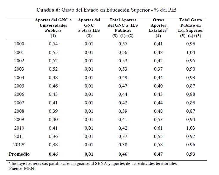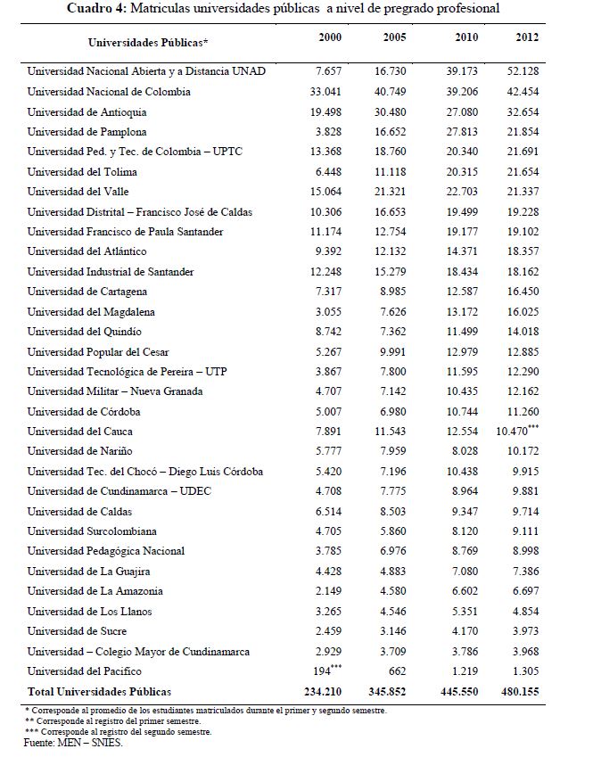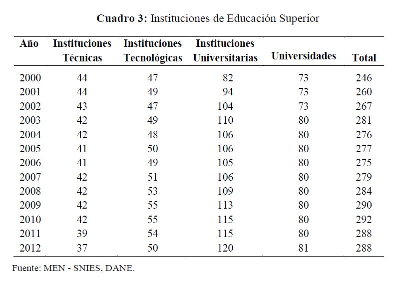 La educación superior en Colombia : situación actual y análisis de eficiencia