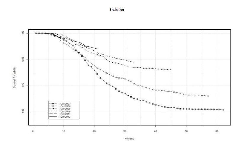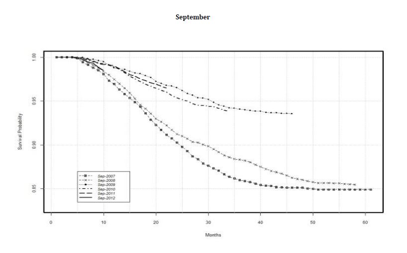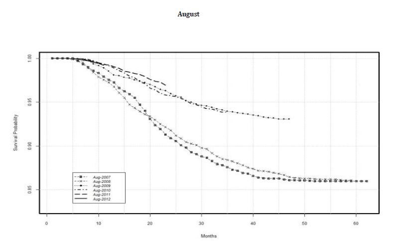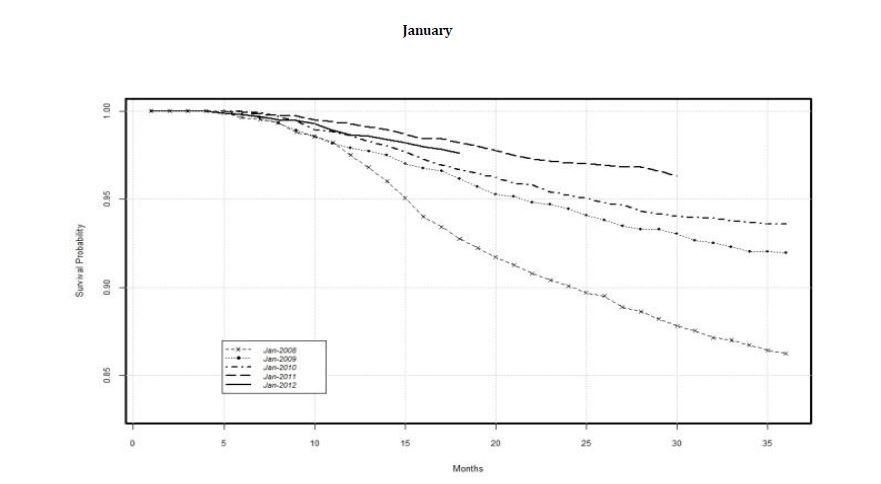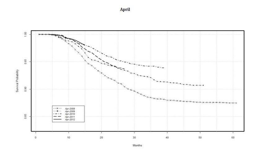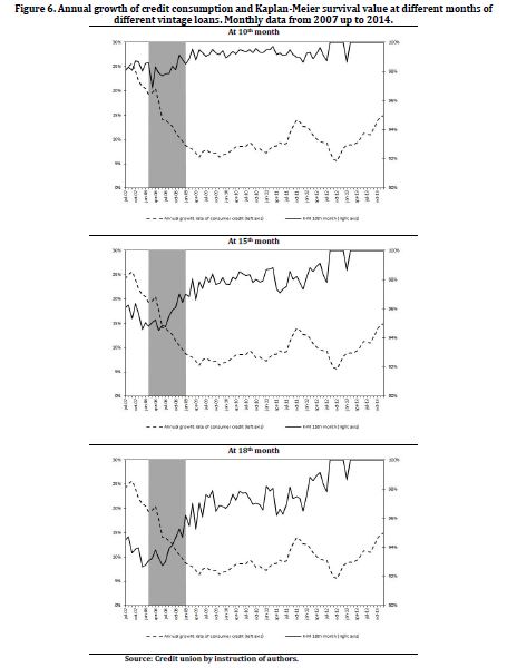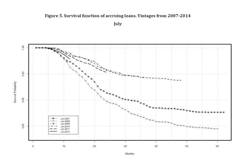 This paper studies the behavior of the survival function of accruing loans during the slowdown experienced by the Colombian economy between January-2008 and March-2009 as documented by Alfonso et al. (2013). We use a dataset with information of different