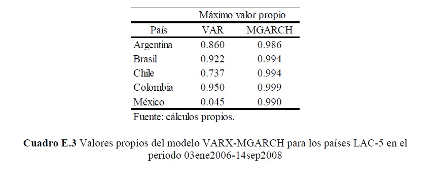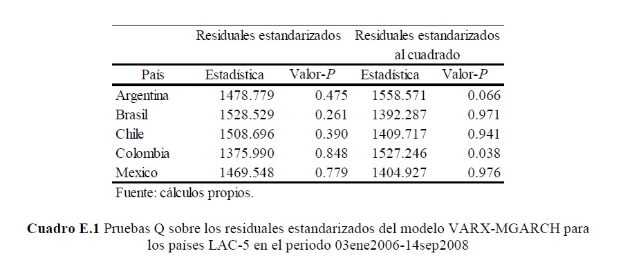 La crisis financiera internacional entre 2007 y 2009 causó grandes y a la vez bruscos movimientos de capitales entre economías avanzadas y emergentes, que fueron acompañados por cambios de similares características en los precios de los activos de éstas últimas, lo que se convirtió en un reto para las autoridades. El objetivo del documento es cuantificar y evaluar el grado de asociación entre los mercados financieros de las economías avanzadas y los precios de los activos de las economía más grandes de Latinoamérica, antes y después del anuncio de la quiebra de Lehman Brothers. Para cumplir con el objetivo se utiliza información diaria entre 2006 y 2011 y un análisis de multiplicadores a partir de un modelo de regresión VARX-GARCH. Los resultados muestran que los multiplicadores son significativos y relativamente pequeños; generalmente con los signos esperados, aunque heterogéneos para la muestra de países estudiados; de corta duración; imétricos; volátiles; y en muchos casos responden de manera opuesta antes y después de Lehman Brothers, lo que indicaría que en esta fecha se produjo un cambio estructural en los mercados internacionales de capitales.