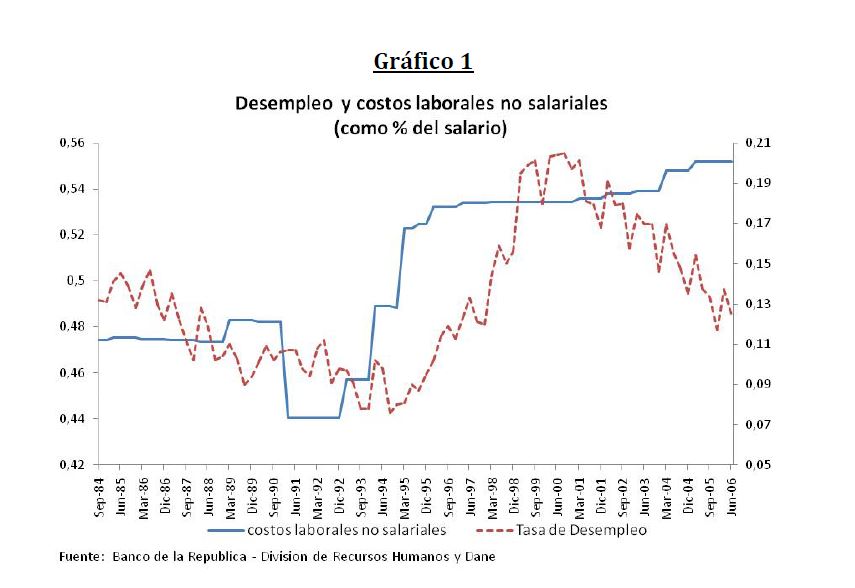 This paper provides an estimation of the natural rate of unemployment for Colombia in 1984-2006. The model used is in the same spirit of Blanchard (1991)’s wage bargaining and uses a Kalman filter to estimate a system of equations for the natural rate of