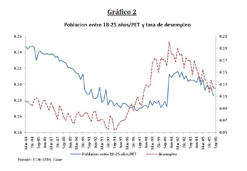 En este trabajo se estima una tasa natural de desempleo para Colombia en el período 1984-2006. Siguiendo el modelo de negociación de salarios de Blanchard (1991), se emplea un filtro de Kalman, para estimar un sistema de ecuaciones para la tasa natural de desempleo, el desajuste del mercado laboral, los salarios y los precios según la metodología propuesta por Salemi (1999). Los resultados de este ejercicio resaltan el papel de la participación joven en el mercado laboral y los costos laborales no salariales como principales determinantes de la tasa natural de desempleo. Asimismo, le restan importancia al papel del salario mínimo en dicha tasa natural, al tiempo que sugieren la existencia de ajustes del mercado laboral colombiano "vía precios".