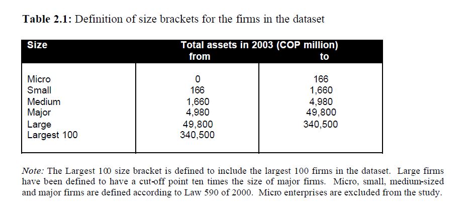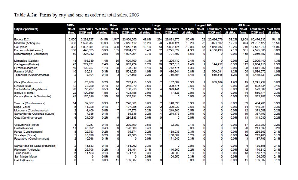 The study presented here looks at the Colombian corporate sector broken down by city. In particular, it studies the eight main cities of the country. It is an initial study, maybe the first of its kind, and it aims to act as a foundation for future rese
