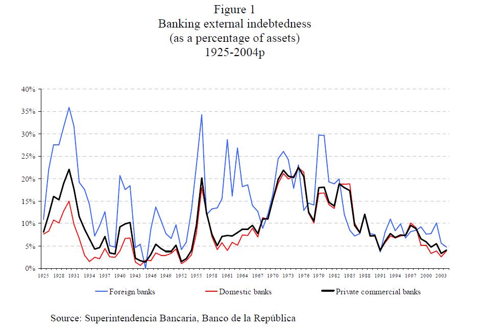The cyclical behavior of external indebtedness: the case of foreign and domestic banks in Colombia