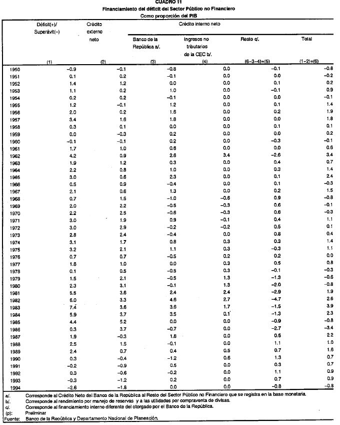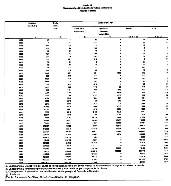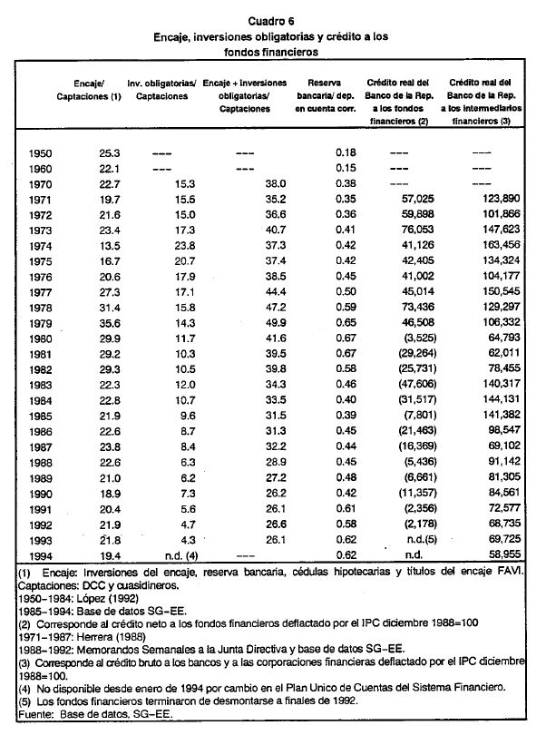 En Colombia la política financiera llevada a cabo desde los años cincuenta hasta principios de la década del setenta está inscrita en el contexto de la literatura sobre represión financiera (Mckinnon (1973), Shaw (1973) (1) En efecto, durante las décadas del cincuenta y el sesenta fue negativa la tasa de interés real sobre los depósitos de ahorro, dada la decisión de las autoridades de mantener fija la tasa de interés nominal en un nivel más bajo que la inflación. Adicionalmente, se crearon diversas instituciones con el objeto de llevar a cabo programas de asignación de crédito hacia sectores considerados prioritarios. Este programa de crédito de fomento fue financiado principalmente con recursos del Banco de la República y mediante el sistema de inversiones forzosas, el cual obligaba a los bancos a invertir parte de sus depósitos en bonos con bajos rendimientos. En tal sentido, estos años se caracterizaron por un elevado grado de desintermediación (Jaramillo (1982)).