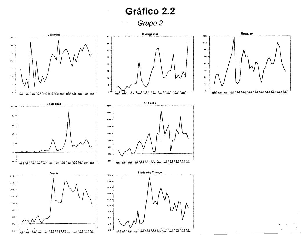 La dinámica del nivel de precios en el caso colombiano durante los últimos 25 años, ha sido presentado como paradigma de un proceso que, sin generar las perturbaciones relacionadas con episodios de alta inflación, tampoco constituye una dinámica de inflación baja. Una manera de comprender el problema es recordado que si bien, de lejos, la inflación colombiana sobrepasa los criterios recordando que si bien, de lejos, la inflación colombiana sobrepasa los criterios que se han establecido para que los países europeos tengan ingreso al tratado de Maastricht, los indicadores fundamentales si cumplen, también de lejos, dichos guarismos. Por ejemplo, la deuda pública total equivale a aproximadamente el 30% del producto y la posición fiscal ha promediado un 1% del producto (sin exceder 3%) durante los últimos 10 años y, de hecho, ha sido neutral en los últimos cinco. Los análisis econométricos efectuados no han sido exitosos en identificar con claridad y solidez estadística vínculos entre el déficit fiscal y la inflación, aspecto que también surge en trabajos como los de 7, 2 y otros. Al examinar el gasto público, intentando examinar hipótesis ligadas a la teoría de la tribulación y devaluación constituyen un mecanismo de financiamiento que se combinan con la tributación convencional para satisfacer la restricción presupuestal del gobierno, Sin embargo, evidencia mas reciente sugiere que la inflación es un proceso estacionario en Colombia, una vez se corrige por saltos no estocásticos.