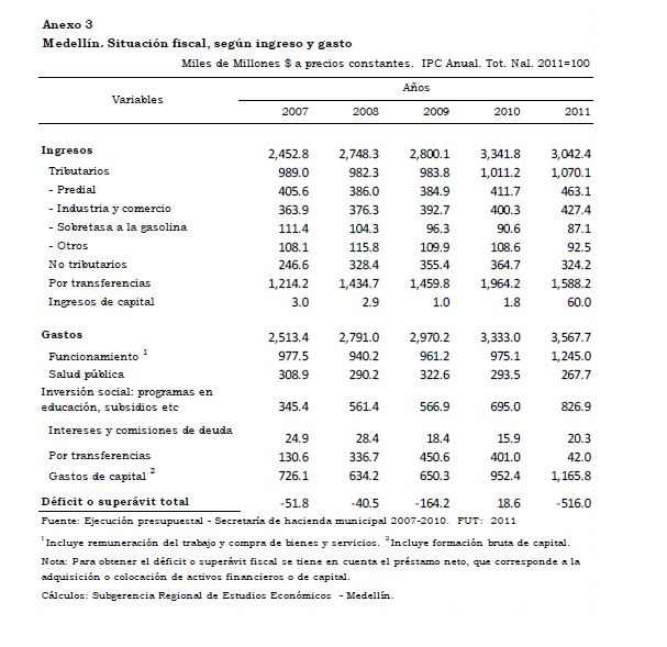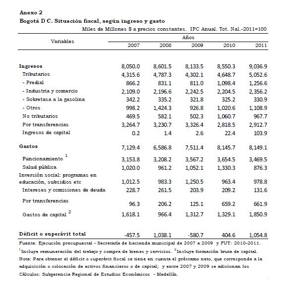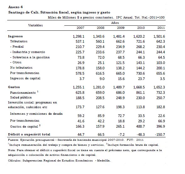 Evolución de las cifras fiscales entre 2007 y 2011 : gobiernos centrales de las principales seis ciudades colombianas
