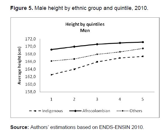 Using data from the 2010 Colombia Demographic and Health Survey and of the National Survey of the Nutritional Situation in Colombia (ENDS-ENSIN), we analyzed the evolution of the height for the Colombian birth cohorts in the period 1946-1992 by ethnic gro