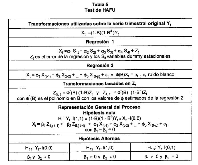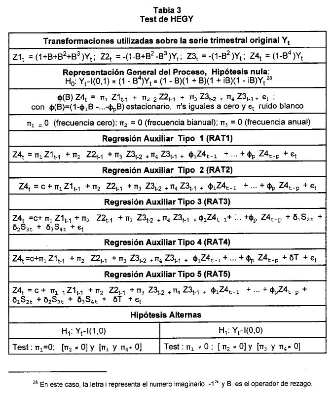 El propósito del presente documento es presentar, no sólo, una revisión de literatura sobre el tema de raíces unitarias, sino, introducir algunos elementos nuevos en la discusión, tratamiento y caracterización del componente estocástico de estacionalidad en series observadas a intervalos "regulares de tiempo".
