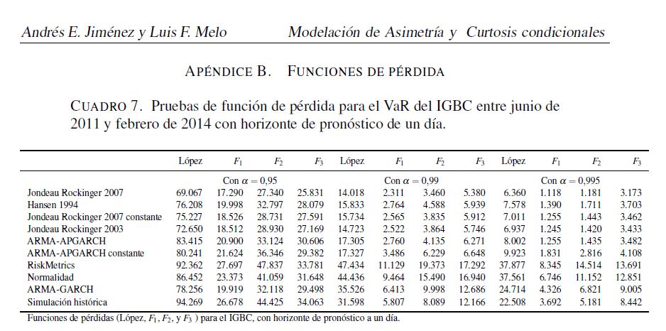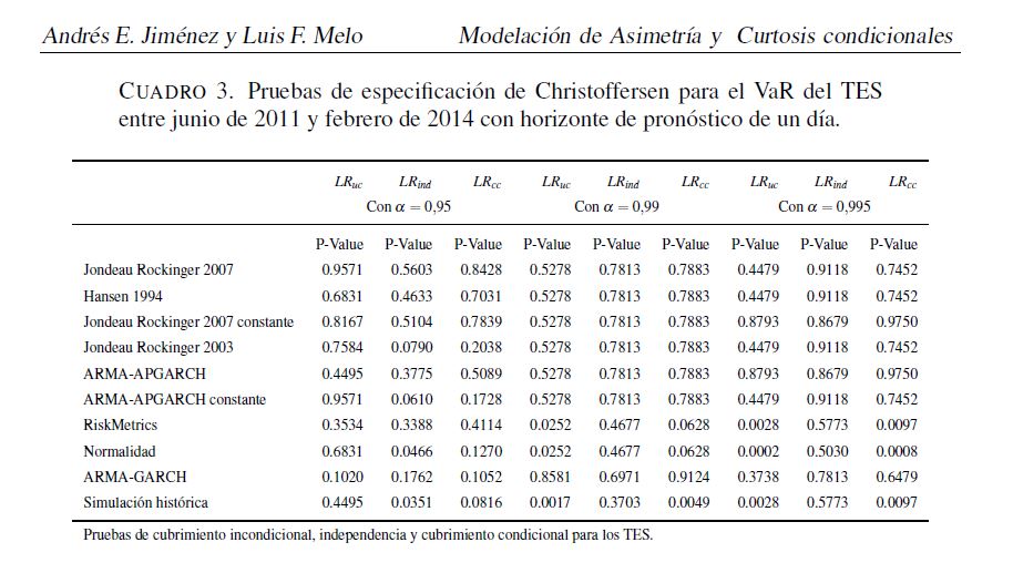 Modelación de la asimetría y curtosis condicionales : una aplicación VaR para series colombianas