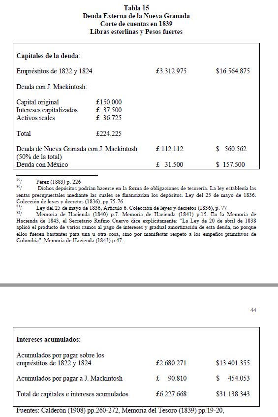 En los años veinte del siglo XIX, Colombia, entonces Gran Colombia, fue el 05r deudor internacional. En los siguientes cien años su acceso al mercado internacional de capitales fue mínimo, y su historia financiera estuvo marcada por sucesivas renegociaciones con sus antiguos acreedores. Tardaría un siglo para librarse del fardo de aquel endeudamiento asumido para financiar las campañas libertadoras. En una perspectiva de largo plazo, el manejo de la deuda pública, interna y externa, parece haber sido sostenible.