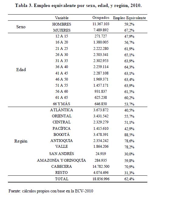 En este trabajo se evalúa la calidad del empleo en Colombia. Usualmente, la calidad del empleo ha sido analizada a través de indicadores sintéticos que resumen sus distintas dimensiones. Sin embargo, esta aproximación carece de un marco teórico que respalde la elección y la ponderación de las variablesdentro del indicador. Con el fin de superar dichas deficiencias,se utilizan la teoría del consumidor y las escalas de equivalenciapara evaluar la calidad del empleo a través de los impactos de las características ocupacionales sobre el bienestar delos trabajadores. Con base en información de la Encuesta de Calidad de Vida (ECV) de 2010 se encuentra que el 62,4% del total de la ocupación del país es de buena calidad.El empleo de 05r calidad se concentra en el centro de la distribución etaria, siendo de menor calidad los empleos juvenil y de adultos 05res, lo que da nueva evidencia de la existencia de un ciclo de vida laboral. Además de losempleos de jóvenes y adultos 05res,el empleo masculino, del sector rural, residente en San Andrés, sin educación superior, de trabajadores de su propia finca o arrendada y delsector agropecuario son los que tienen menor calidad. Por otra parte, se encuentra nueva evidencia de la importancia de las economías de escala en consumo por tamaño de los hogarespara superar la pobrezao mantener o mejorar el bienestar y, de su relación inversa con los ciclos económicos y el nivel de desarrollo de los países.