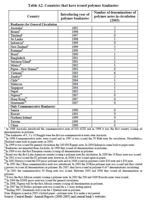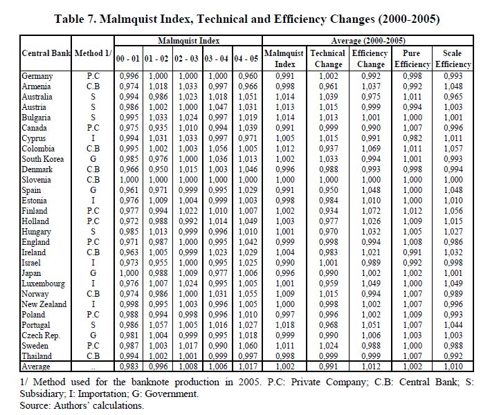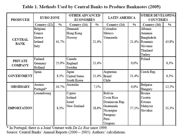 This paper examines trends in banknote printing during the period 2000-2005 for a crosssection of 56 central banks. It was identified that central banks have implemented new strategies to increase efficiency in the production of banknotes, primarily due t