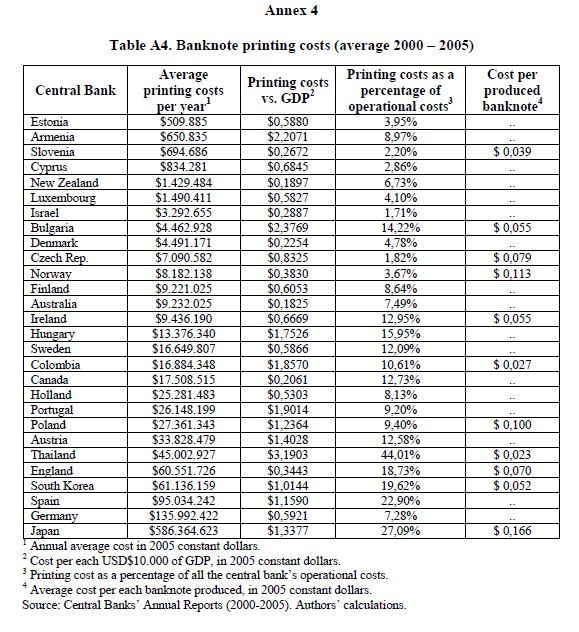 Banknote printing at modern central banking: trends, costs, and efficiency