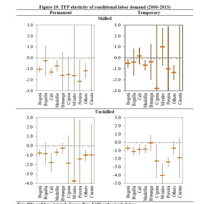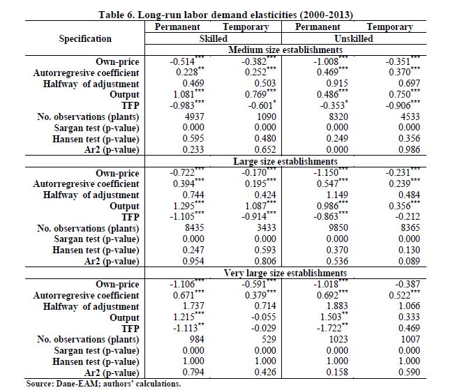 Using the Colombian Annual Manufacturing Survey (EAM) between 2000 and 2013, this paper investigates the existence of heterogeneity in the labor demand within the industrial sector. Long run own-price, output and TFP elasticities vary across a variety of