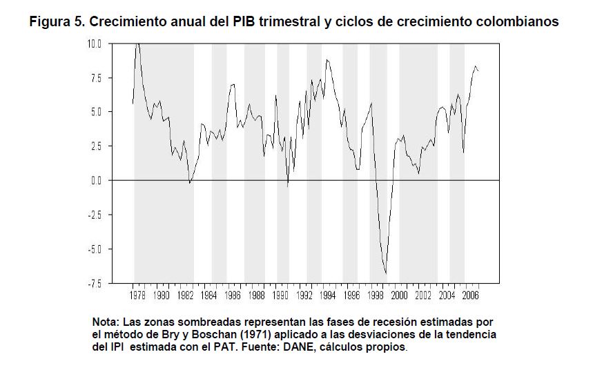 Cronología de los ciclos de crecimiento recientes en Colombia