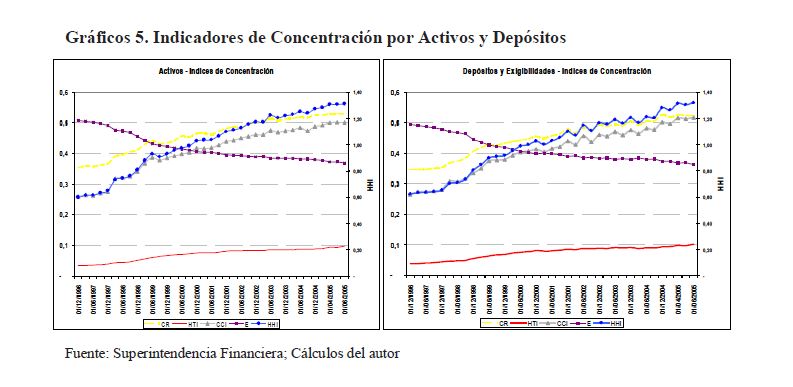 Este trabajo estudia la relación entre los aumentos en la concentración y las dinámicas de competencia del sector financiero crediticio de los últimos años en la economía colombiana. Se encuentra que a pesar de los incrementos en la concentración que reflejan diversos indicadores analizados, el nivel de poder de mercado -medido como el estadístico H de Panzar y Rose (1987) por medio de un análisis de panel de datos- no se ha deteriorado en el periodo 1995-2005. Más aún, existen indicios por los cuales este nivel de competencia se ha incrementado en el periodo, una vez se ha controlado por variables específicas a la entidad así como por variables exógenas macroeconómicas.