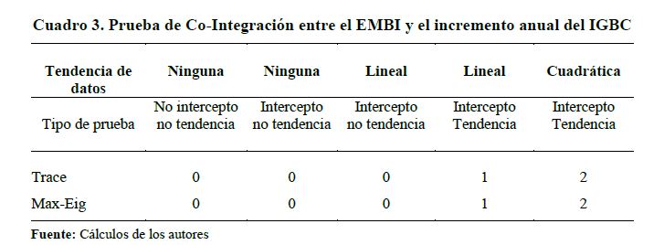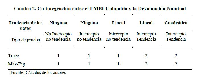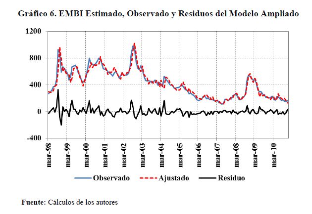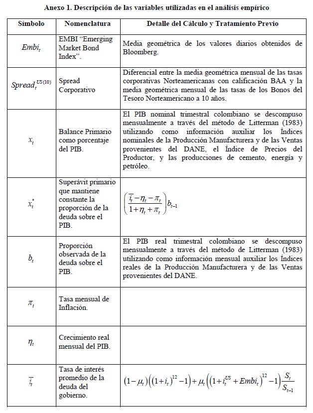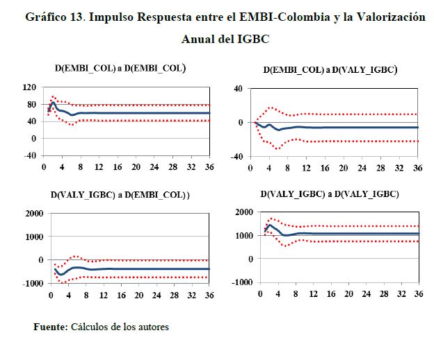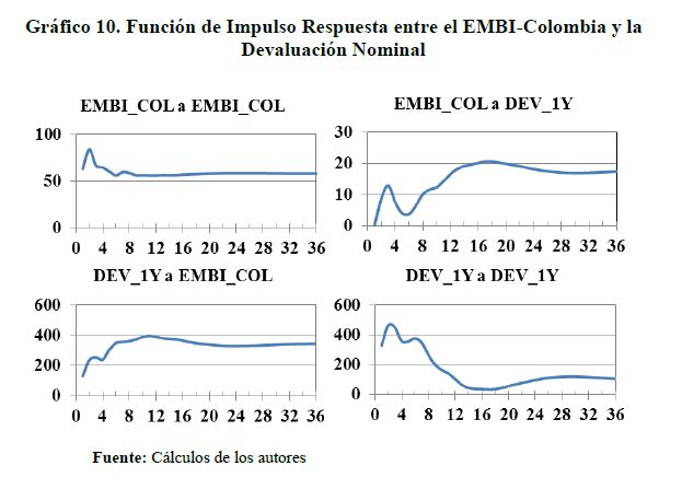 En este trabajo se muestra que el EMBI-Colombia está determinado por el apetito por riesgo de los inversionistas internacionales y que su respuesta es no lineal y está influenciada por la postura fiscal del gobierno. Se encuentra también que la relación entre estas variables sufrió un cambio estructural favorable en la mitad de la década del 2000, que parece estar asociado a los mejores fundamentales macroeconómicos locales y al deterioro del entorno internacional. Finalmente, se concluye que el riesgo soberano mantiene una relación unidireccional con la devaluación nominal y la valorización anual del IGBC, sugiriendo que el EMBI aporta la información básica para valorar las perspectivas de los mercados financieros locales.