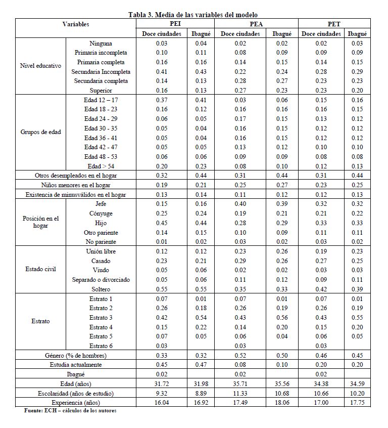 The high rate of participation in Ibagué has brought forth the highest unemployment rate among the main cities in Colombia during the last years. This paper, reports some evidence about the determinants of the labor participation in Ibagué for the period