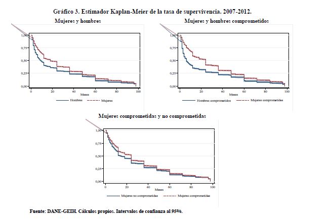 | dc.description | En Colombia la tasa de desempleo femenina es más alta que la masculina. Al concentrarnos en la duración del desempleo, se verifica la hipótesis de que las mujeres comprometidas (i.e., casadas o en unión libre) tienen episodios de desempleo de 05r duración que los hombres de igual condición. Dados los efectos observados en las tasa de riesgo y en el tiempo de fallo, el ingreso de la pareja reduce el esfuerzo de búsqueda de un empleo tanto en hombres como en mujeres, pero esto se observa con 05r claridad en el caso de ellas. Allí está una de las causas del 05r desempleo femenino. No obstante, el efecto del ingreso de la pareja en la duración del desempleo de las mujeres, se reduce si en los hogares hay niños en su primera infancia. Contar con un mecanismo de divulgación de las vacantes que agilice el emparejamiento de firmas y trabajadores, reduce la duración del desempleo. El ciclo económico afecta la duración. El riesgo de salir del desempleo aumenta hasta los cuatro meses; pero una vez se alcanza este umbral el riesgo se reduce de manera dramática. | spa |