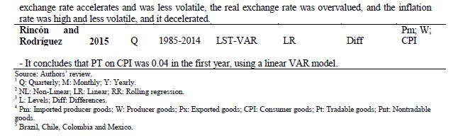 | dc.description.abstract | Determining the exchange rate pass-through on inflation is a necessity for central banks as well as for firms and households. This is an apparently easy and intuitive task, but it faces high complexity and uncertainty. This paper examines the nature of th | eng |