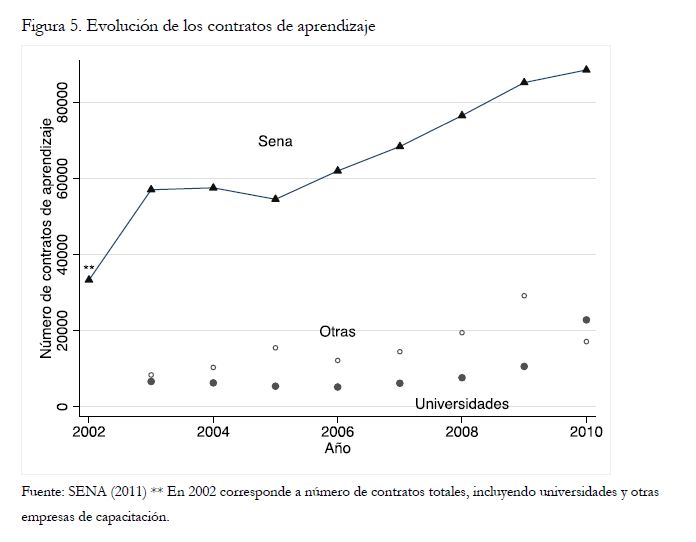 La participación del estado en la formación para el trabajo (FpT) se justifica por fallas contractuales en el mercado laboral y consideraciones redistributivas. Este ensayo: i) caracteriza la oferta de programas de FpT en Colombia—educación media vocacional, formación profesional técnica y tecnológica, y formación complementaria—, ii) discute evidencia rigurosa disponible referente a su impacto y pertinencia, y iii) rescata, a partir de la evidencia, lecciones para el diseño de programas de FpT. Estas lecciones incluyen la efectividad de la financiación pública a la provisión privada relativa a la provisión pública directa, los méritos de los incentivos al desempeño y de la separación de funciones de financiación, provisión y regulación, y la importancia de currículos enfocados a competencias transversales no-rutinarias.