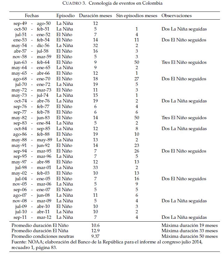This paper estimates the impacts of weather conditions on Colombian food inflation growth. We use generalized impulse response functions for a smooth transition non-linear model that includes food inflation and the sea surface temperature index (SST v3.4)