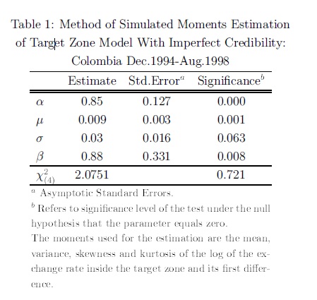 Estimating credibility in Colombia's exchange rate target zone