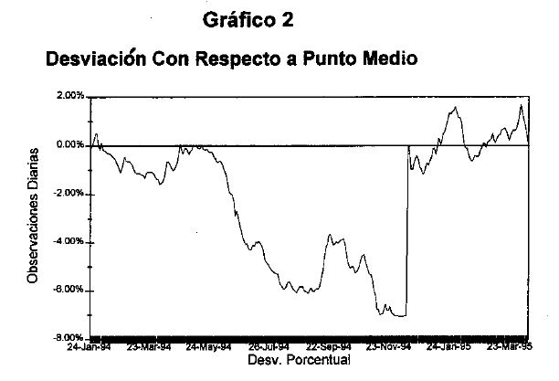 Desde enero de 1994 la política cambiaria colombiana se basa en un sistema formal de bandas para la tasa de cambio, mediante el cual el Banco Central se compromete a intervenir en el mercado cuando la tasa de cambio llega a unos determinados niveles mínimo y máximo, definidos anteriormente y conocidos por los agentes. Este sistema es muy común a lo largo del tiempo y el espacio(1). En la discusión mas reciente, el esquema se realiza usualmente en una línea de investigación que surge con el trabajo de Krugman (1991). En este modelo se establece que en el anterior de las bandas- la tasa de cambio debe tener un comportamiento y una distribución probabilística particular. Ahora bien, la evidencia empírica internacional no permite concluir de manera clara que el comportamiento de la tasa de cambio sea el que se deriva del modelo analítico(2) El comportamiento previsto por el modelo para la tasa de cambio en el interior de las bandas resulta -obviamente- de los supuestos inherentes al mismo. Las limitaciones que ha tenido el modelo en capturar aspectos sobresalientes del comportamiento observado de la tasa de cambio, por ende, ha constituido una directriz esencial en el programa investigativo reciente (1991-1995). En la literatura se han analizado con especial cuidado los siguientes factores específicos; (i) Plena credibilidad del público en el sistema (ii) No intervención de las autoridades en su interior (iii) Completa flexibilidad de precios. Relajar los supuestos (i) y (iii) implica un comportamiento distinto al señalado en el modelo básico. En concreto, el hecho de que los agentes no crean que la banda se pueda sostener implicará ataques a la política cambiaria y una ubicación excesiva (frente a la planteada por el modelo) de la tasa de cambio observada en las franjas extremas de las bandas. De otra parte, la intervención de las autoridades puede sesgar la tasa de cambio a ubicarse en la parte media de la banda, o cerca de aquella en la cual efectúa la intervención.