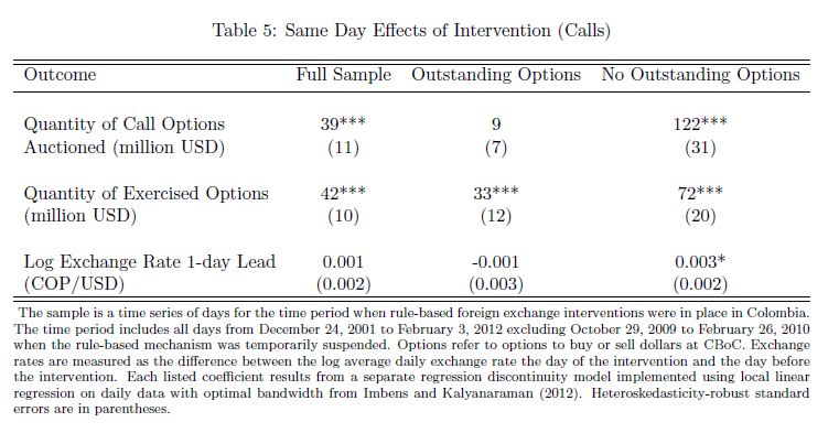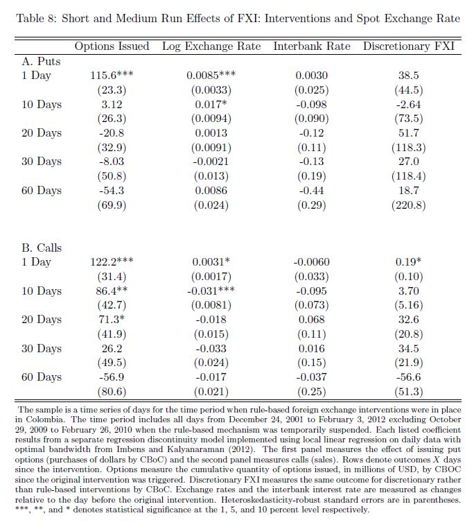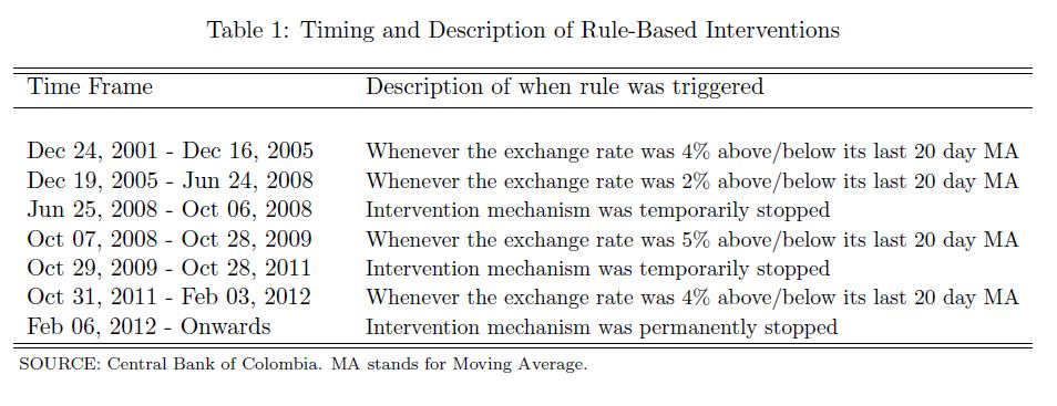 We investigate the e ectiveness of sterilized foreign exchange interventions by exploiting a discontinuous policy rule used by the Central Bank of Colombia (CBoC). We use a unique data set from CBoC comprised of tick by tick intervention and order book da