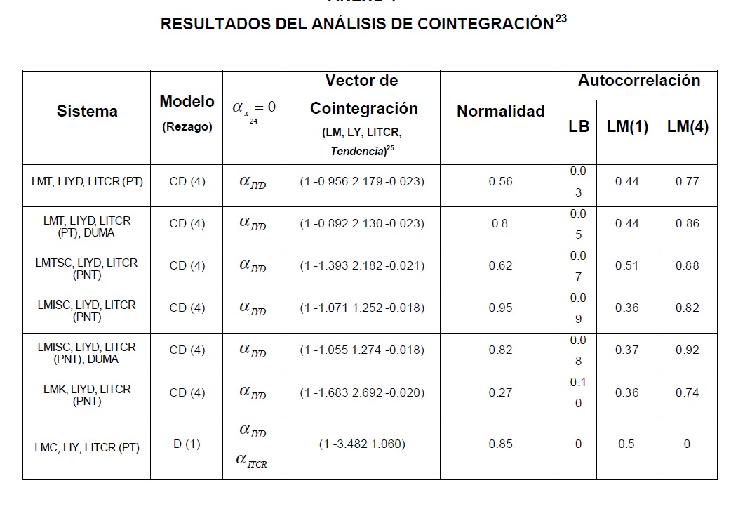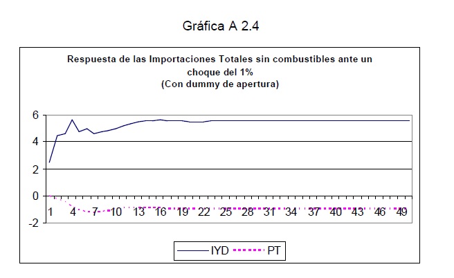 El presente documento explora la existencia de una relación de largo plazo entre la demanda de importaciones totales, de bienes de consumo, de bienes intermedios y de bienes de capital con el ingreso interno y la tasa de cambio real a través de un modelo multivariado VEC. Adicionalmente pretende hallar las elasticidades ingreso y precio en cada uno de los casos considerando hechos tan relevantes durante el periodo de estudio como el proceso de apertura. En la 05ría de los casos fue posible establecer dicha relación, aunque la bondad del pronóstico difiere para cada una de las especificaciones encontradas. La interpretación de las elasticidades conforme indica la literatura proviene de la función de impulso respuesta o de la denominada matriz C. Al aplicar en el contexto de la balanza de pagos las elasticidades estimadas se estableció que aquellas sugeridas por la matriz C mostraban un mejor ajuste.