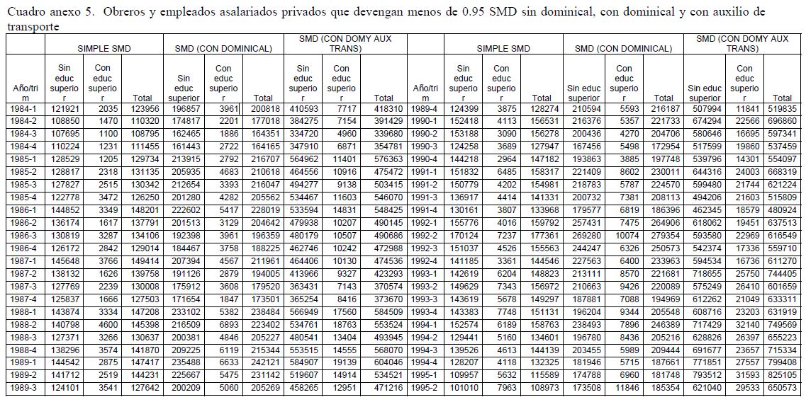 We use quarterly household surveys data of Colombian seven largest cities, to estimate the degree of evasion of the legal minimum wage. We also assess the strategies that have put into practice private companies (more extra hours, hiring less young worker