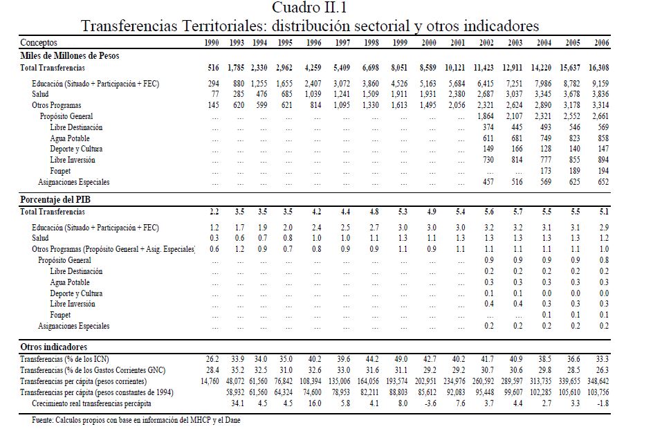 Implicaciones fiscales y sectoriales de la reforma a las transferencias territoriales en Colombia