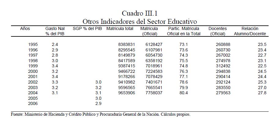 En este documento se analizan las implicaciones fiscales y sectoriales de la reforma a las transferencias territoriales que actualmente se debate en segunda vuelta en el Congreso. La reforma ajusta los montos que el gobierno nacional deberá transferir a las regiones y considera marginalmente la discusión sobre su distribución sectorial y territorial. Las competencias de gasto no se consideran en el proyecto, por lo que el modelo de descentralización fiscal no sufrirá cambios sustanciales. Se concluye, en primer lugar, que el Sistema General de Participaciones establecido en 2001 ayudó a flexibilizar el manejo del presupuesto general de la Nación, y le ha permitido al gobierno nacional hacer ahorros importantes que, infortunadamente, no se han reflejado plenamente en sus resultados fiscales. Con lo aprobado en la primera legislatura, la administración central podría mantener en el mediano plazo su actual postura fiscal y usar los ahorros potenciales para reducir su deuda. En caso de hundirse el proyecto, se compromete la sostenibilidad de sus finanzas. En segundo lugar, las transferencias han permitido avances importantes en materia de cobertura, especialmente en la educación y la salud, aunque no se ha logrado su universalización. Entre tanto, pocos avances se registran en materia de eficiencia y calidad en la prestación de estos servicios. Los pronósticos sectoriales dependen, en buena parte, de los fondos públicos asignados en los próximos años. Con el texto aprobado en la primera legislatura, se logra cobertura plena en el nivel básico de educación y en el régimen subsidiado de salud.
