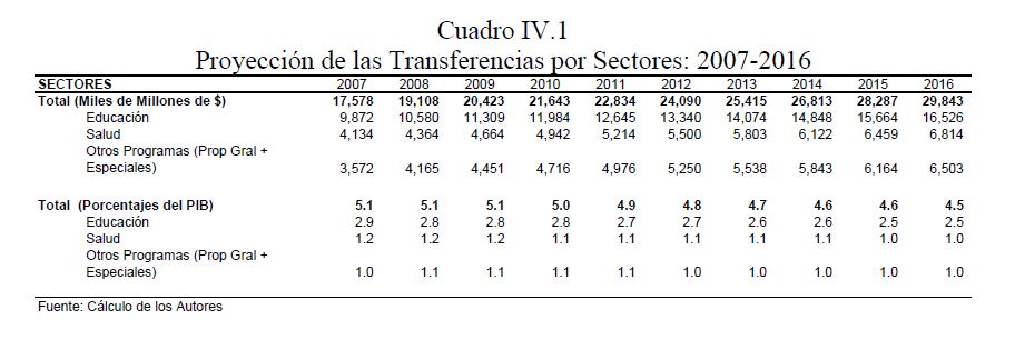 This paper analyzes the fiscal and sectorial effects of the subnational transfers bill, which is currently in Congress in its second, and final, legislative period. The bill adjusts the resources that the national government will have to transfer to the s